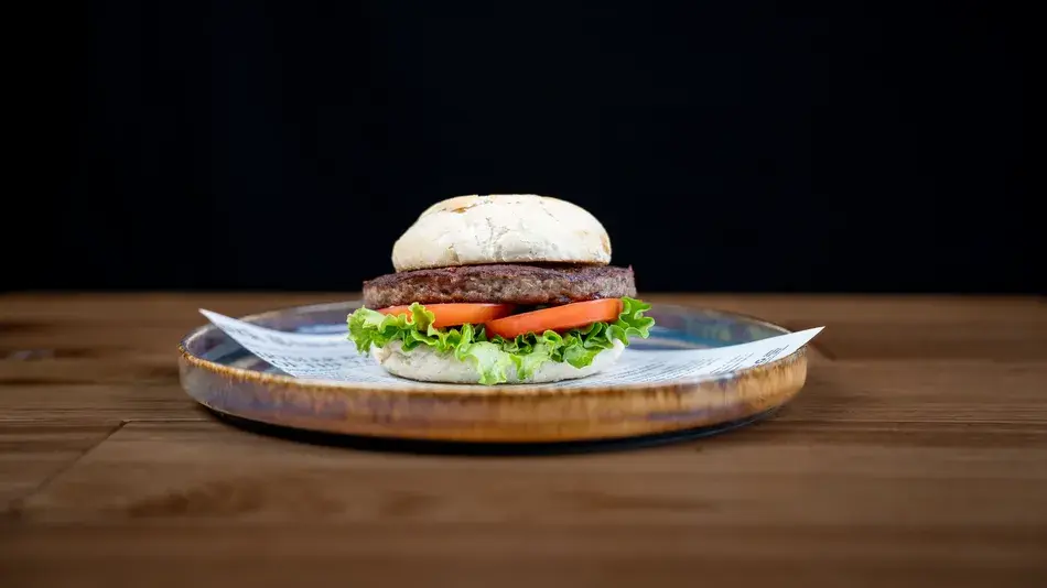hamburger di manzo, insalata, pomodoro.