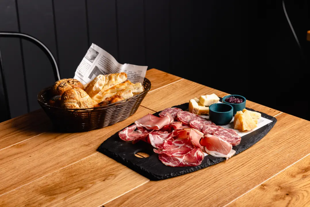 Coppa stagionata, salame e speck selezionati, accompagnati da formaggi stagionati, miele e cipolle caramellate. Servita con mini paninetti croccanti e focaccine. È il primo segnale che qualcosa sta per succedere. Un assaggio dal mondo di sopra… prima che il varco si apra. Consigliato per 2 persone.