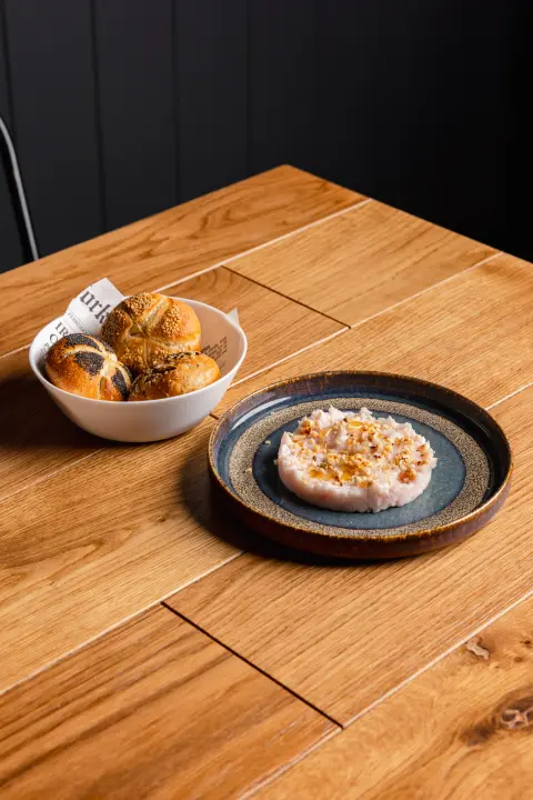 Battuta di lardo, miele e nocciole, servita con pane croccante. Un equilibrio fragile tra dolcezza e intensità. Basta poco perché tutto collassi… ed è lì che dà il meglio.