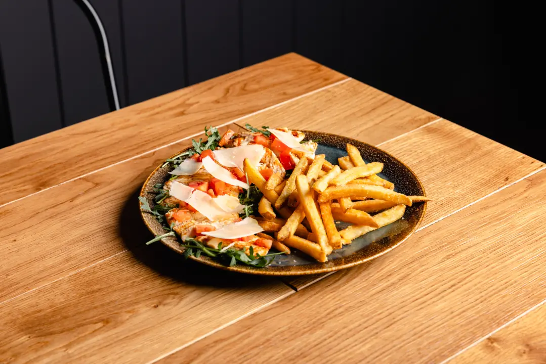 Tagliata di petto di pollo alla griglia, servita con rucola fresca, scaglie di grana e pomodorini. Pulita, equilibrata, senza eccessi. Quando il sistema è stabile, ogni elemento trova il suo posto. 🍽 Contorno a scelta Patatine fritte Insalatina.