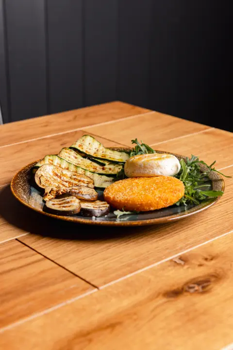 Tomino alla piastra, dorato fuori e morbido al cuore, servito con verdure grigliate e rosti di patate croccanti. Paninetti croccanti. Quando la forza non serve, conta restare stabili.