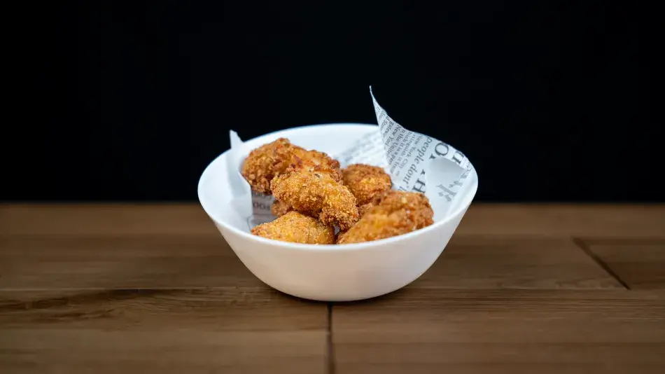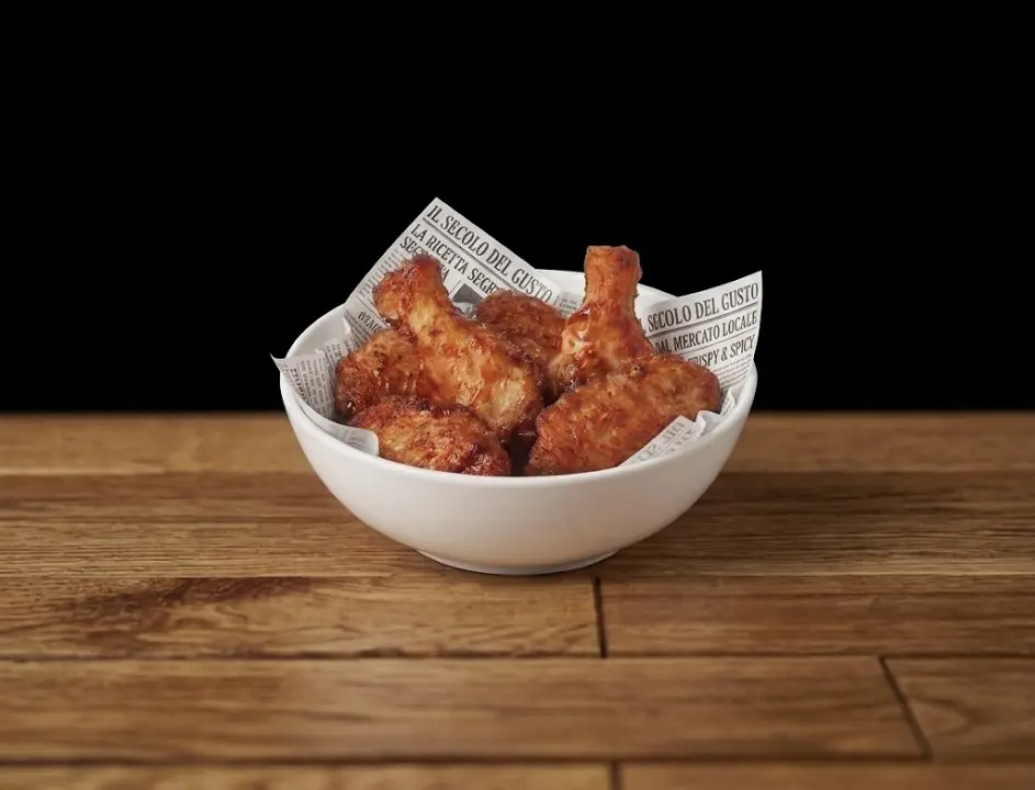 Alette di pollo fritte dorate speziate.