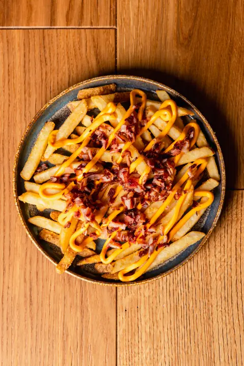 Pataine fritte con cheddar e bacon.